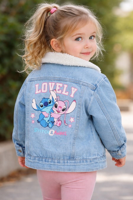جاكيت جينز Stitch and Angel بناتي مبطن فرو