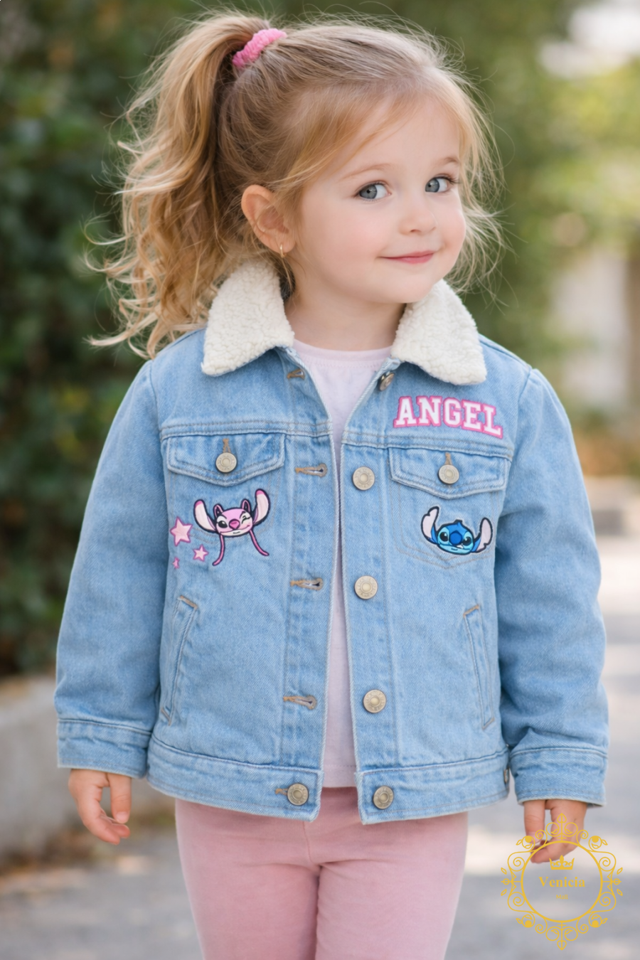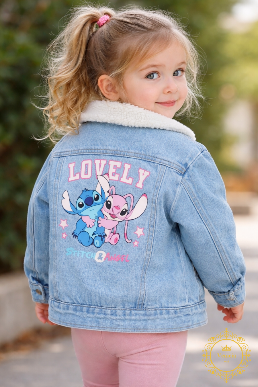 جاكيت جينز Stitch and Angel بناتي مبطن فرو