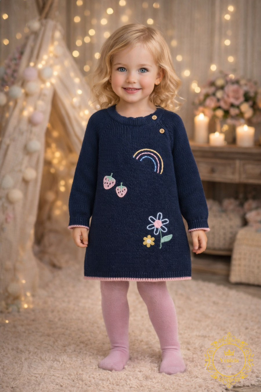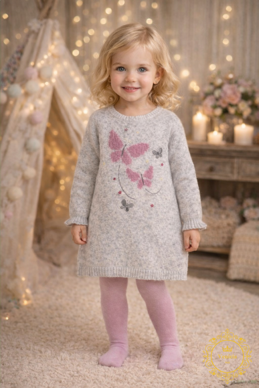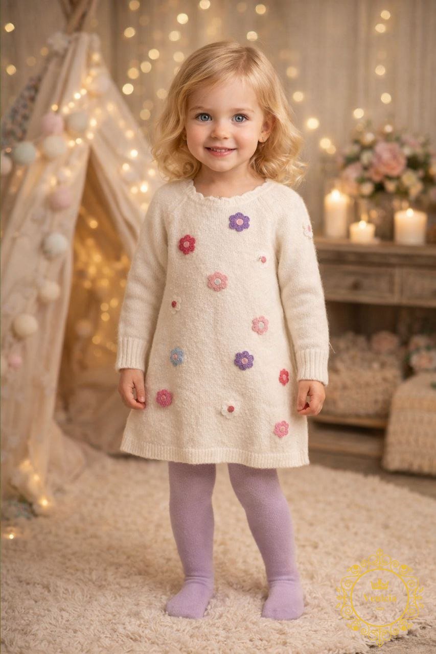 فستان صوف ورود وفراشات مع كيلون (هيلاهوب)