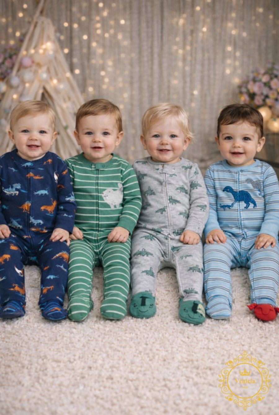 طقم قطني بيبي ولادي 4 قطع ربيعي