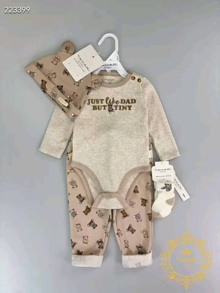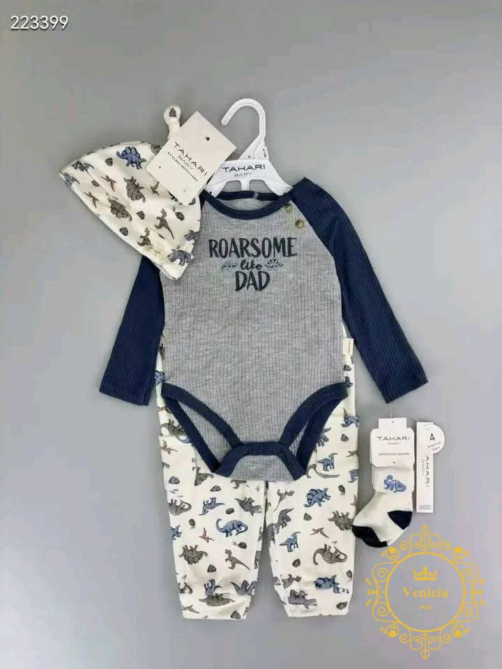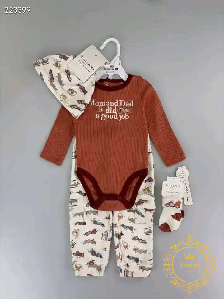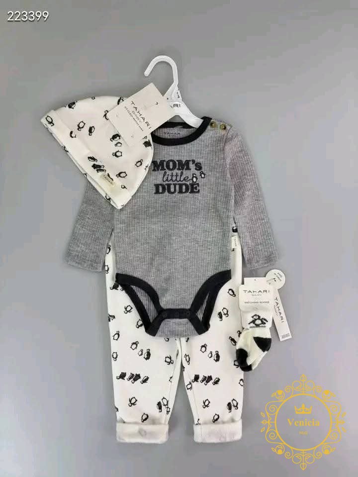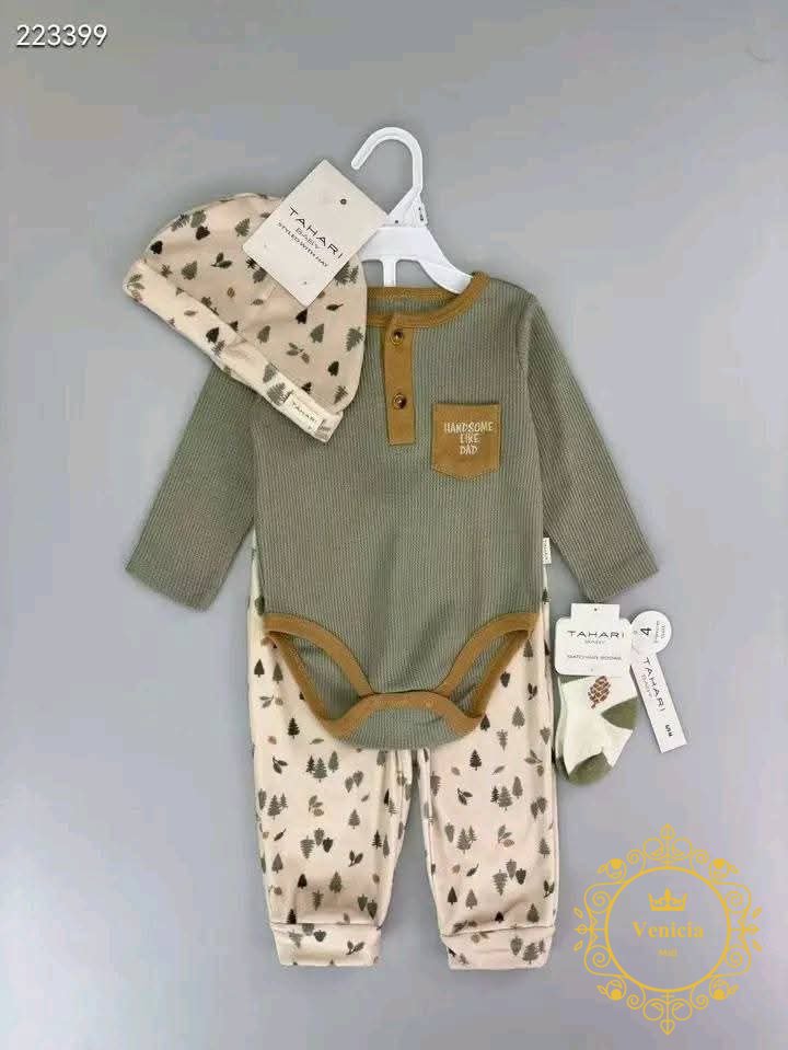 طقم قطني بيبي ولادي 4 قطع ربيعي