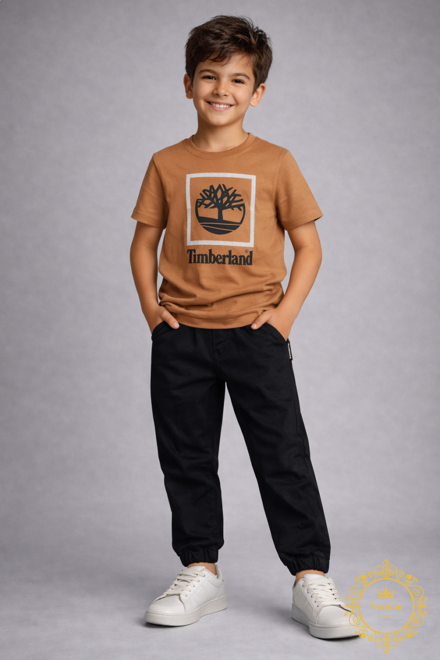 طقم ولادي قطعتين بلوزه قطن وبنطلون كتان