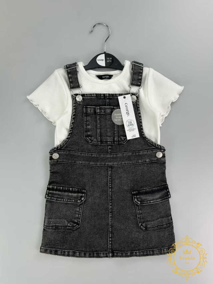فستان جينز وبلوزة قطن بيبي من Kiabi