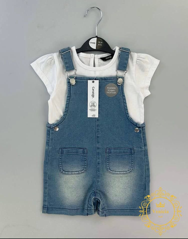 فستان جينز وبلوزة قطن بيبي من Kiabi